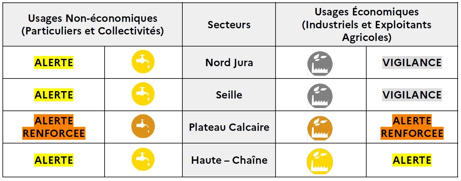 de l’eau dans le Jura avec le passage en « Alerte » :
